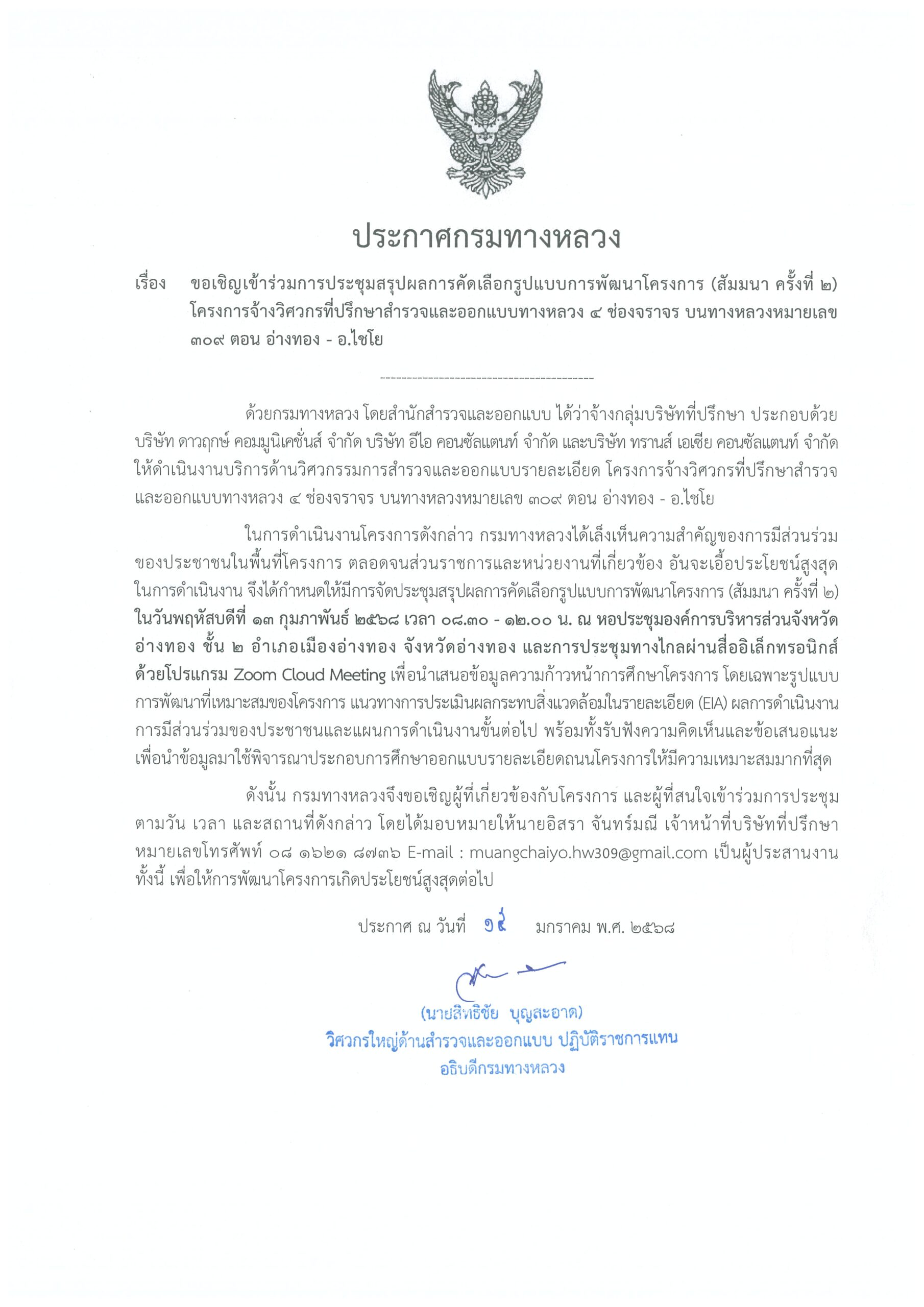 ขอเรียนเชิญเข้าร่วมการประชุมสรุปผลการคัดเลือกรูปแบบการพัฒนาโครงการ (สัมมนา ครั้งที่ 2) ในวันที่ 13 กุมภาพันธ์ 2568