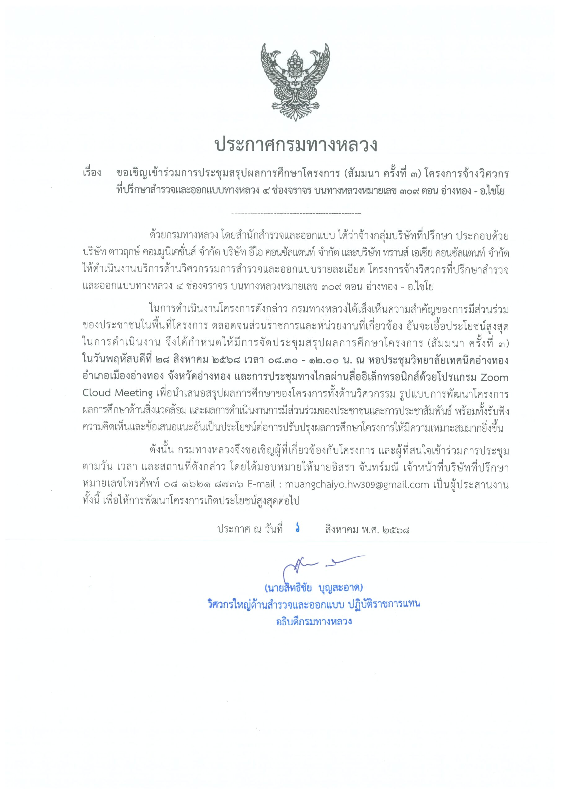 ขอเรียนเชิญเข้าร่วมการประชุมสรุปผลการศึกษาโครงการ (สัมมนา ครั้งที่ 3) ในวันที่ 28 สิงหาคม 2568