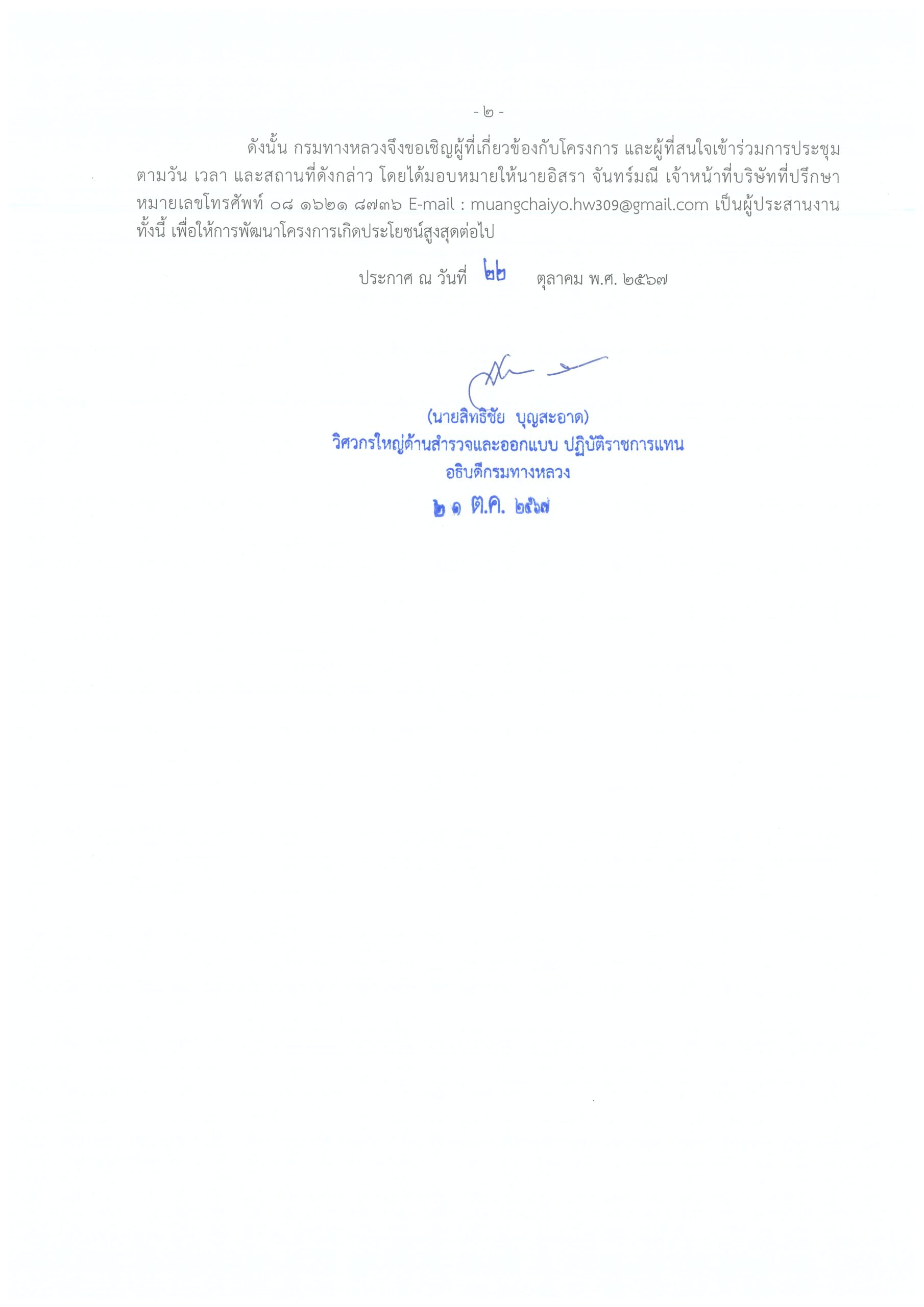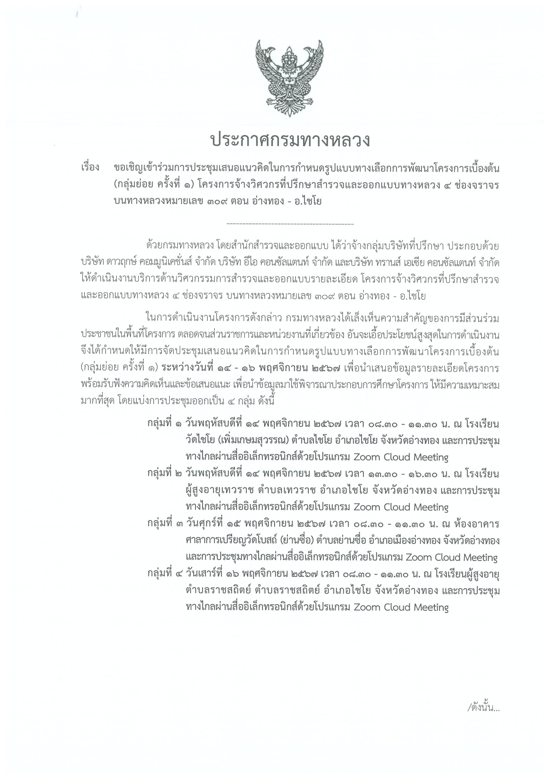 ขอเรียนเชิญเข้าร่วมการประชุมเสนอแนวคิดในการกำหนดรูปแบบทางเลือกการพัฒนาโครงการเบื้องต้น (กลุ่มย่อย ครั้งที่ 1) ในวันที่ 14-16 พฤศจิกายน 2567