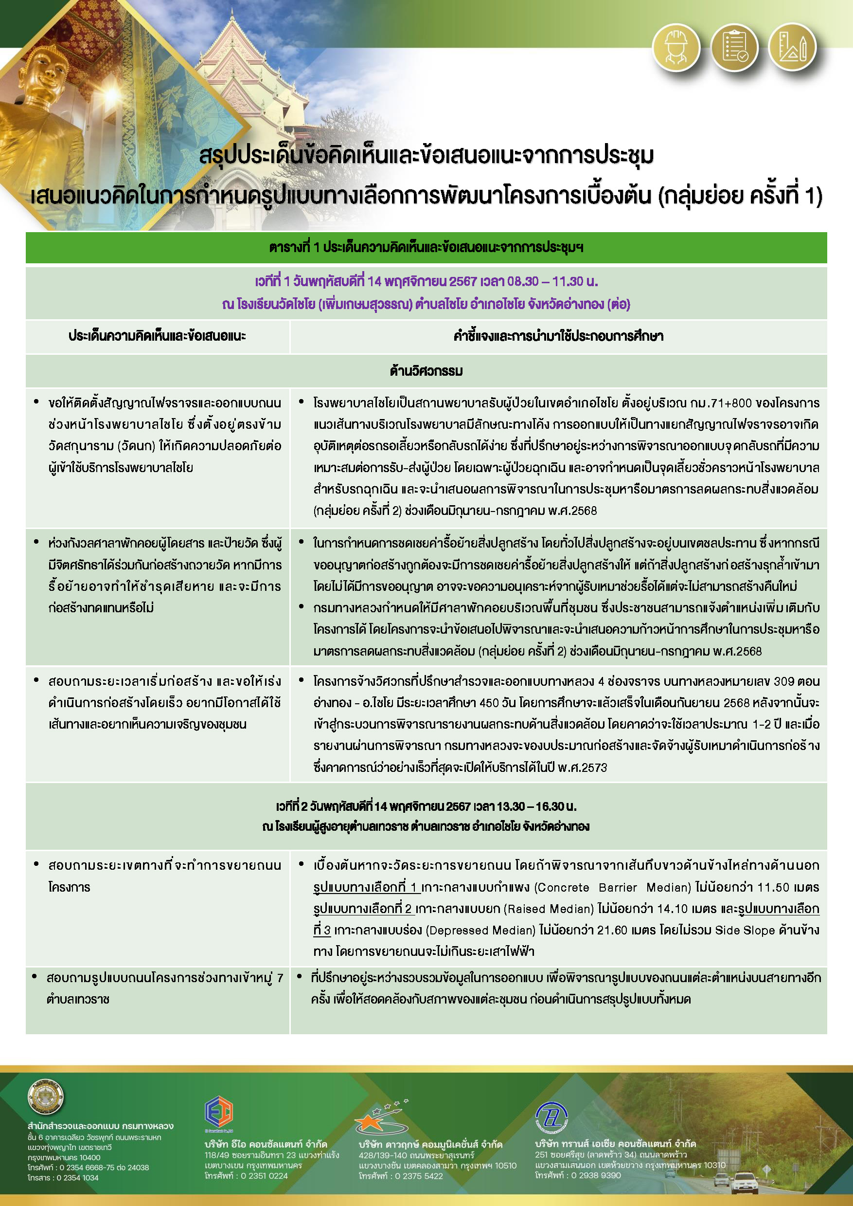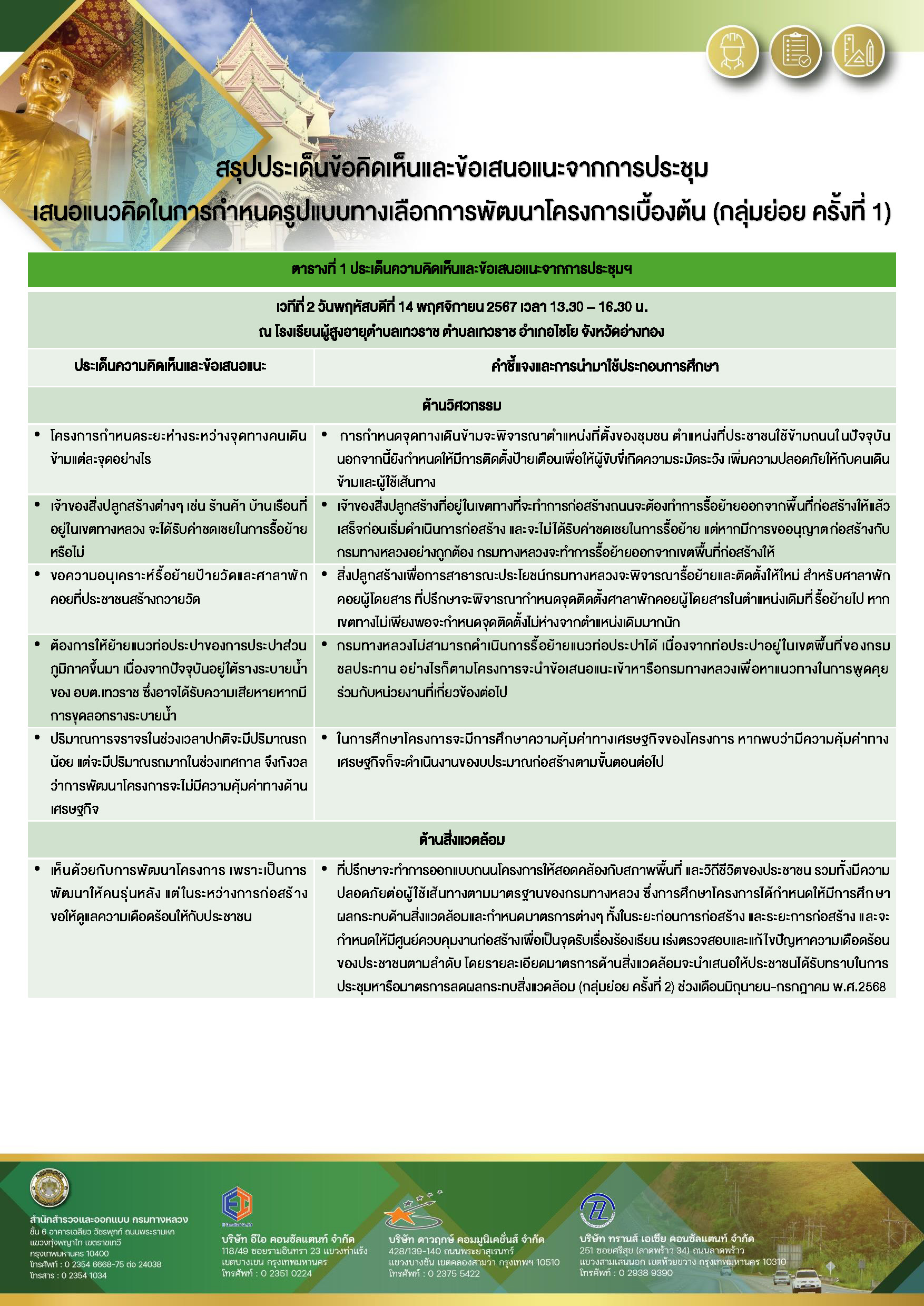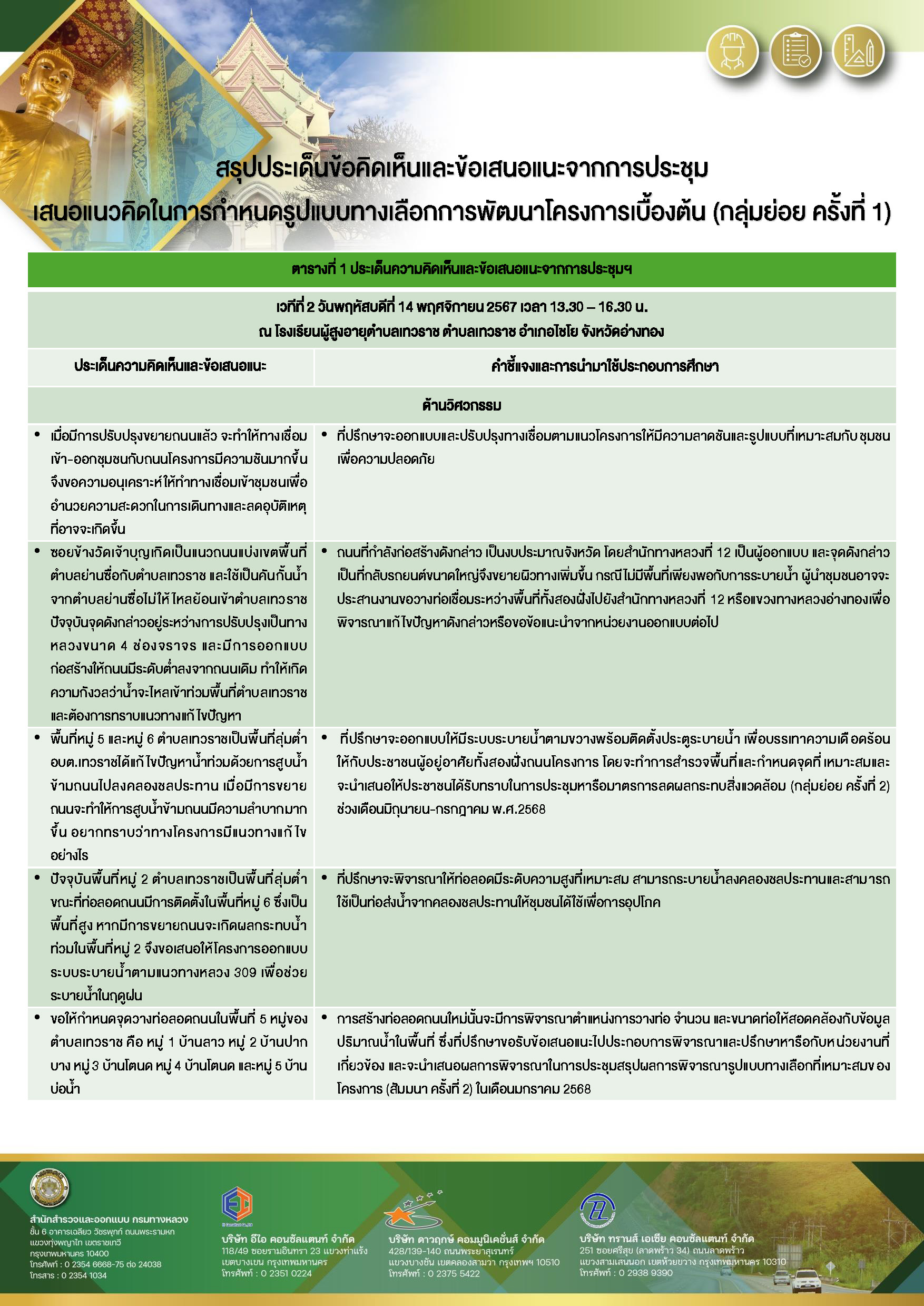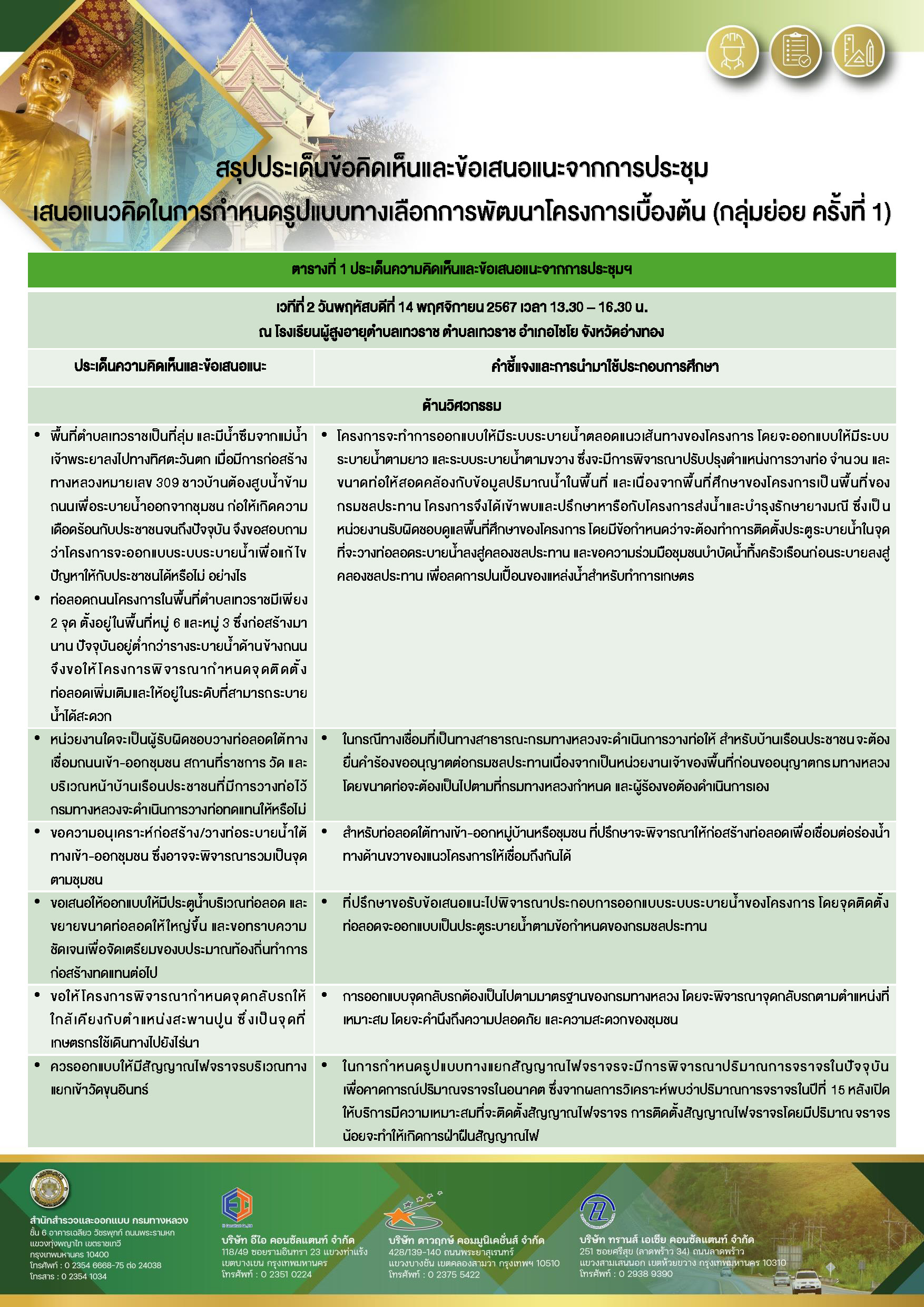 สรุปผลการประชุมเสนอแนวคิดในการกำหนดรูปแบบทางเลือกการพัฒนาโครงการเบื้องต้น (กลุ่มย่อย ครั้งที่ 1)