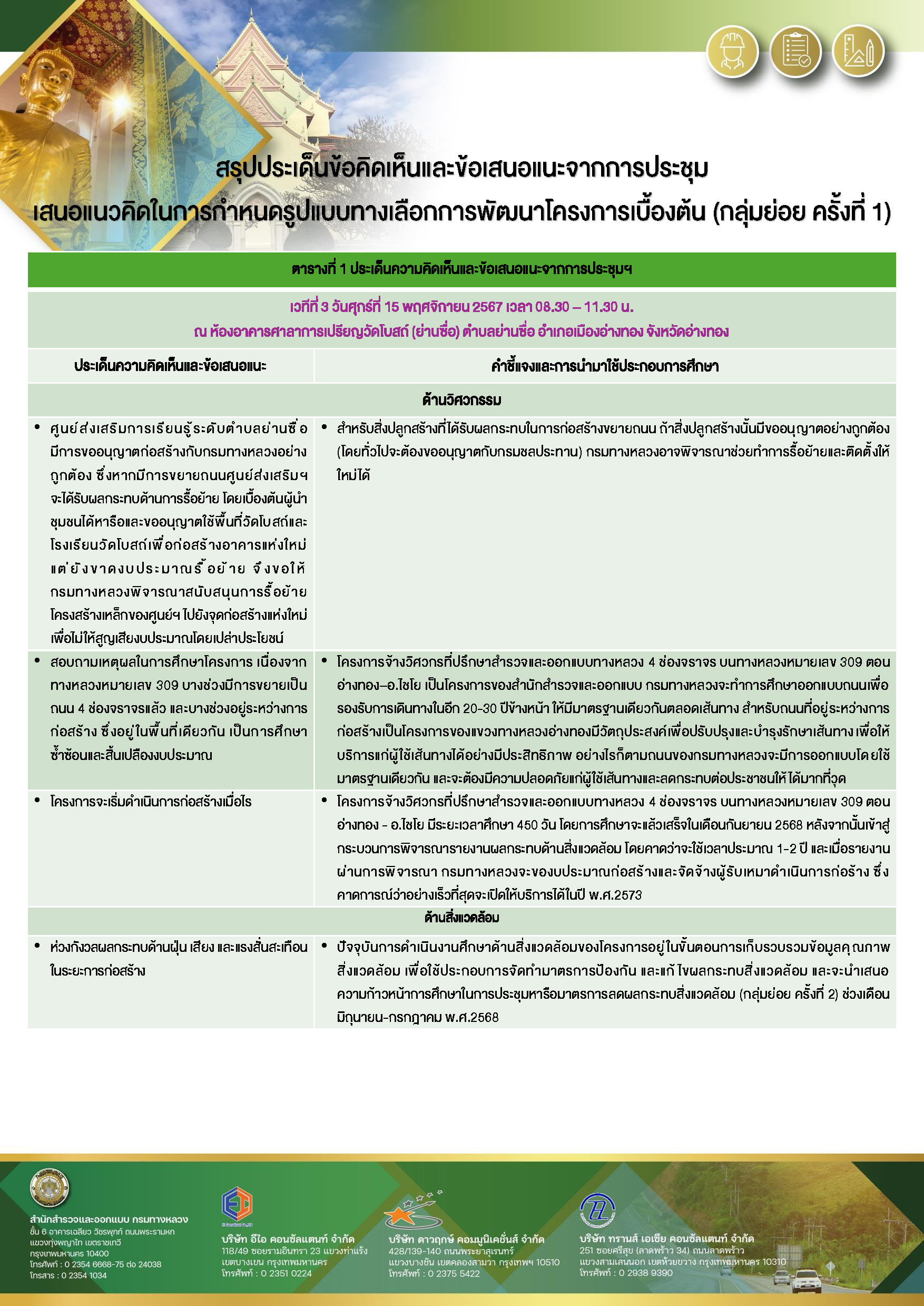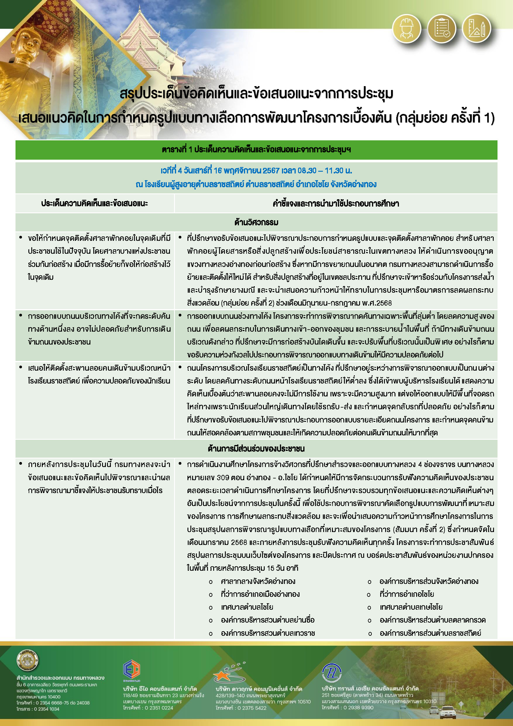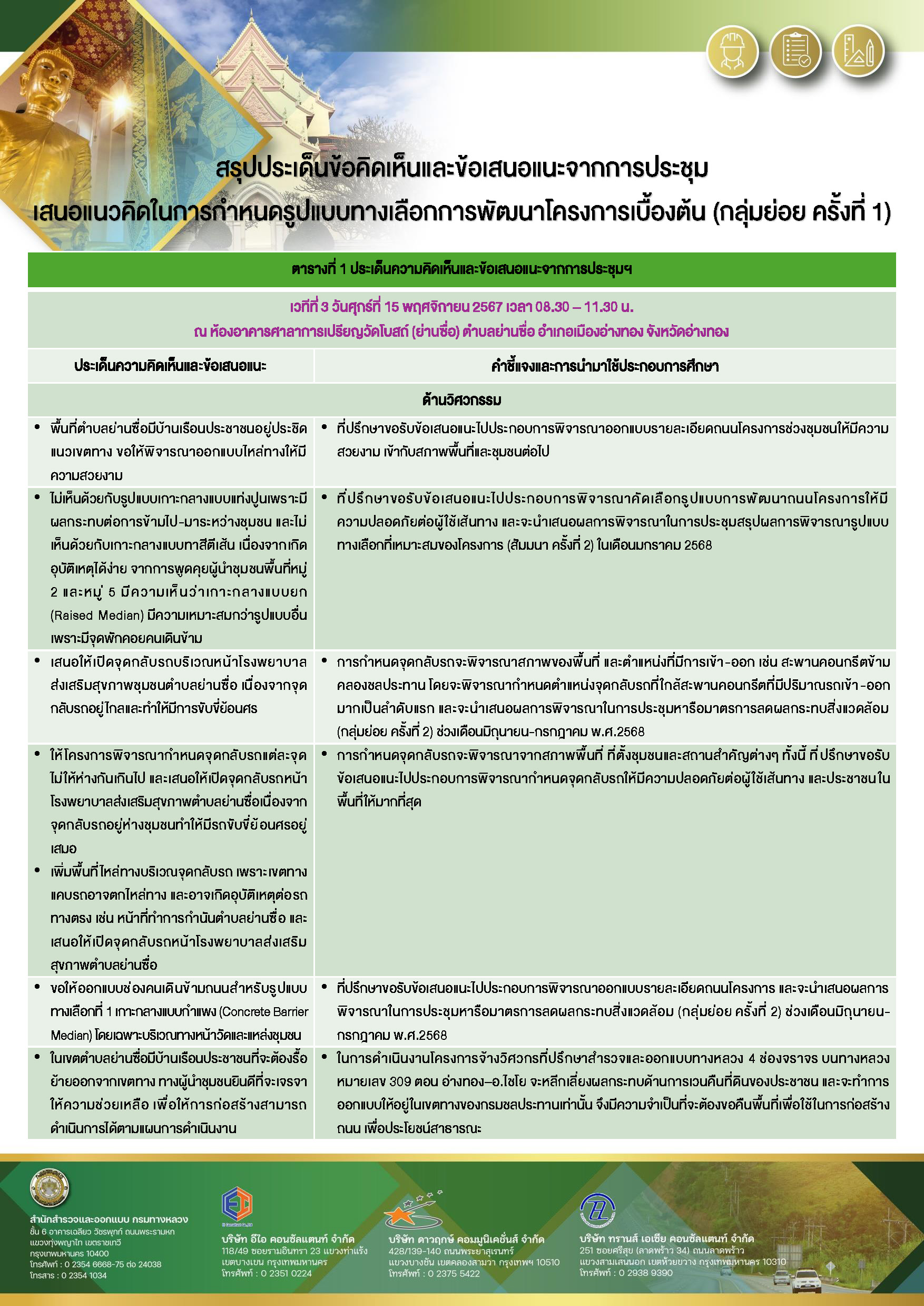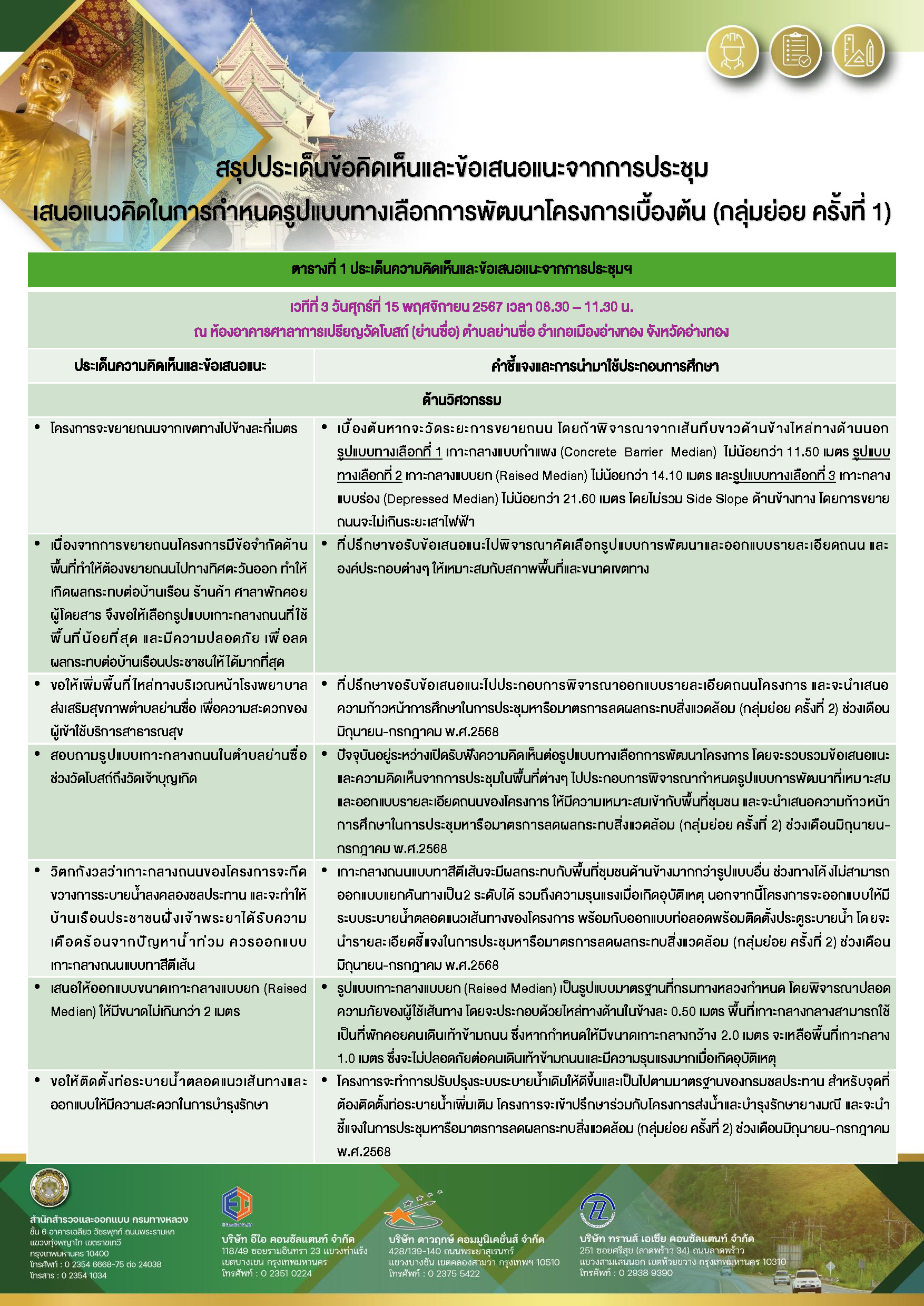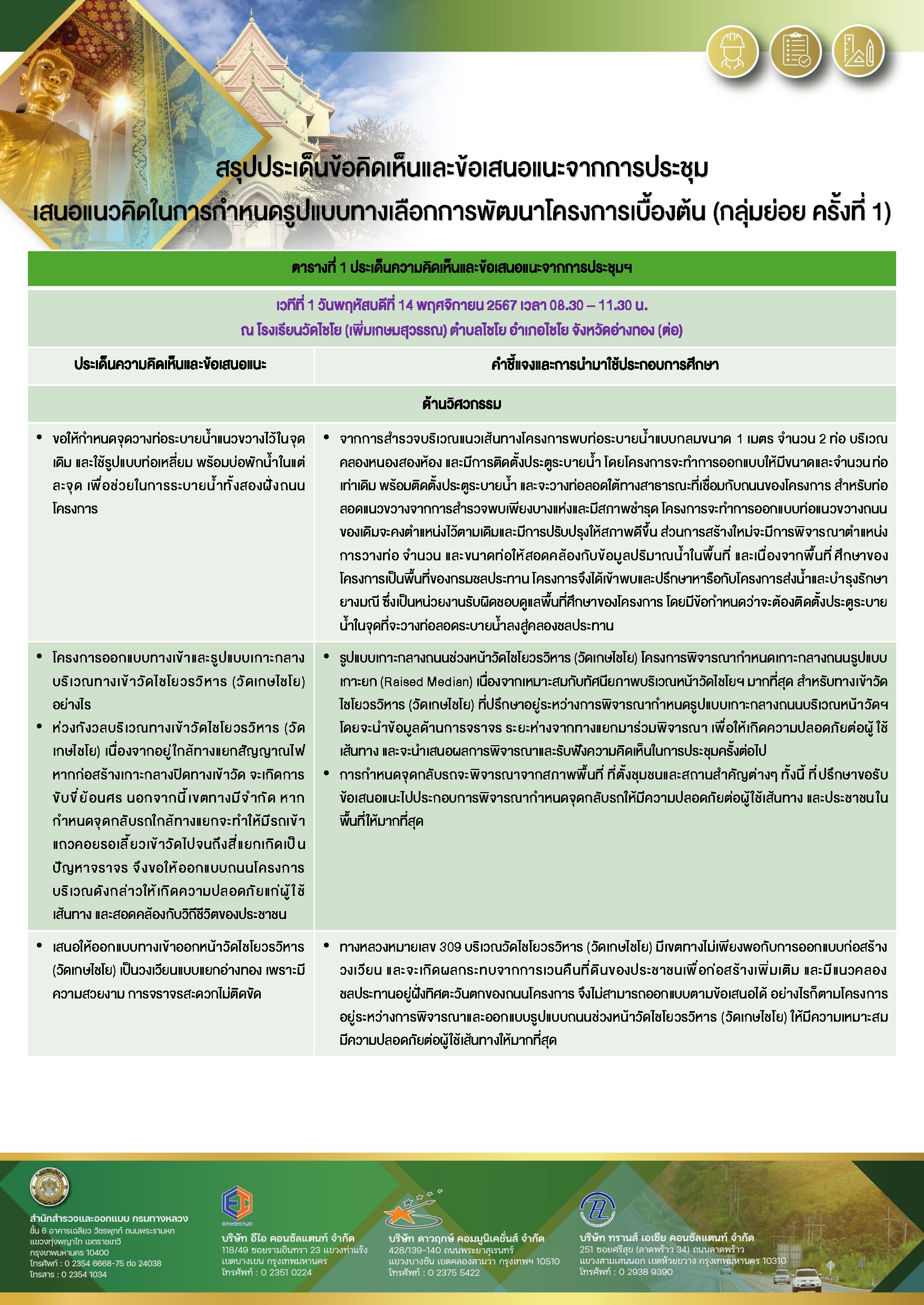 สรุปผลการประชุมเสนอแนวคิดในการกำหนดรูปแบบทางเลือกการพัฒนาโครงการเบื้องต้น (กลุ่มย่อย ครั้งที่ 1)