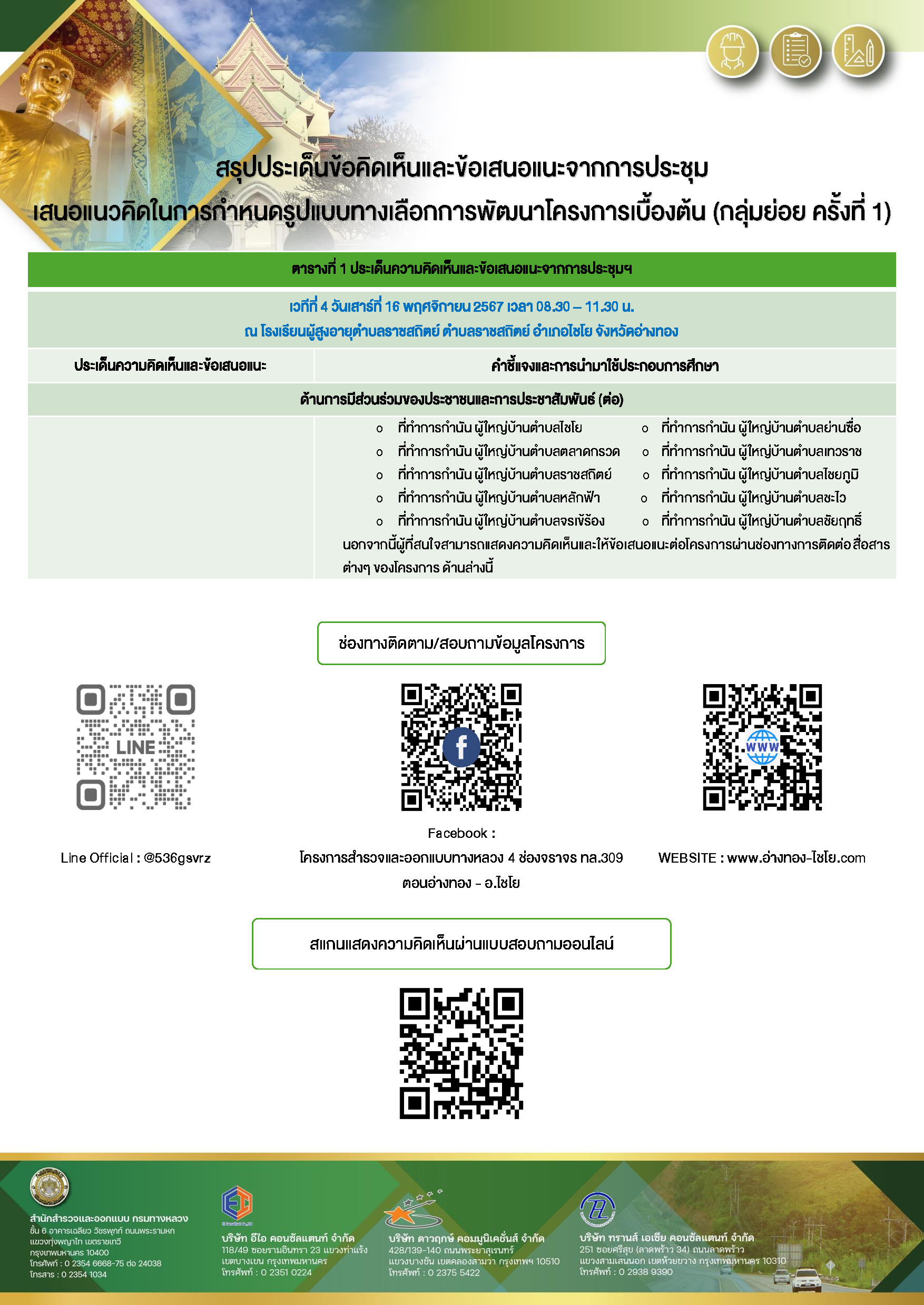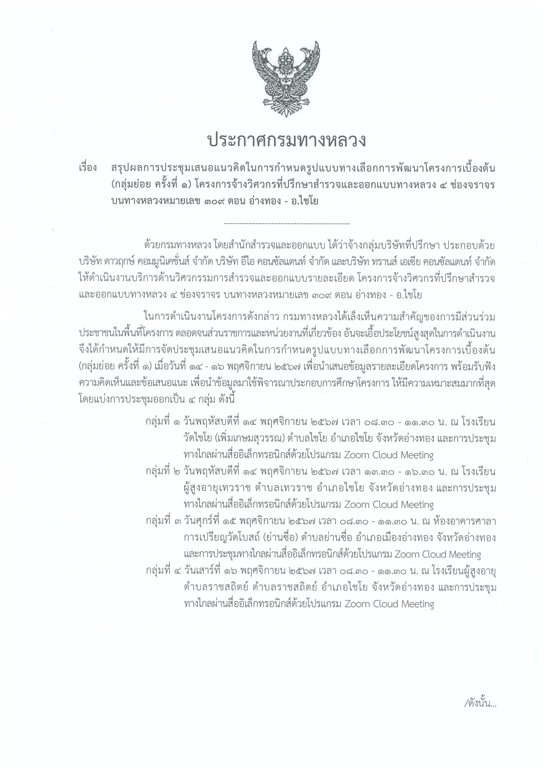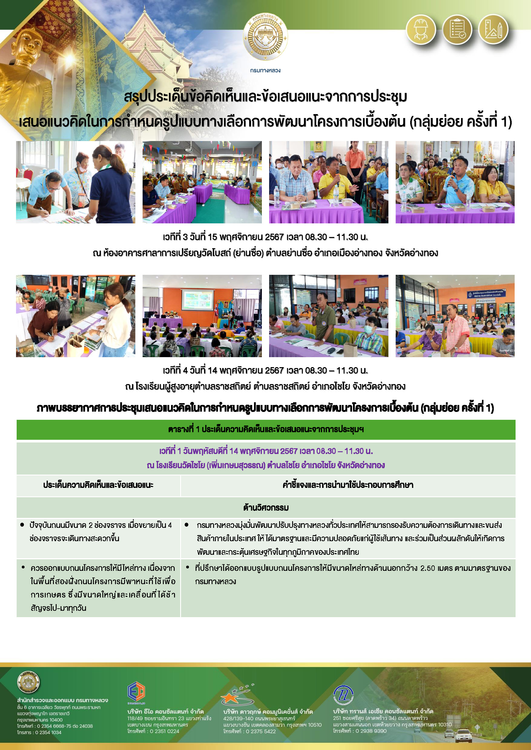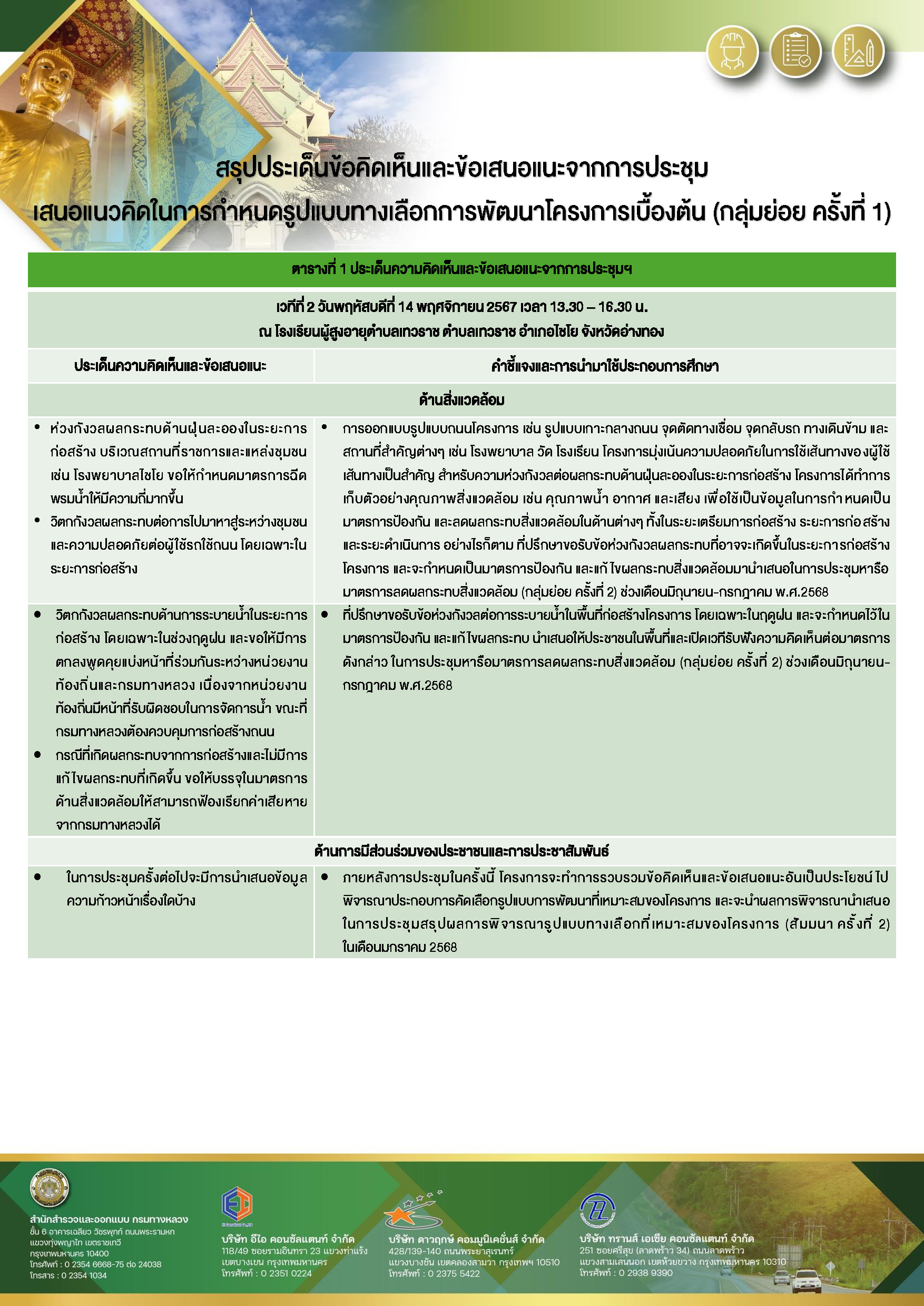 สรุปผลการประชุมเสนอแนวคิดในการกำหนดรูปแบบทางเลือกการพัฒนาโครงการเบื้องต้น (กลุ่มย่อย ครั้งที่ 1)